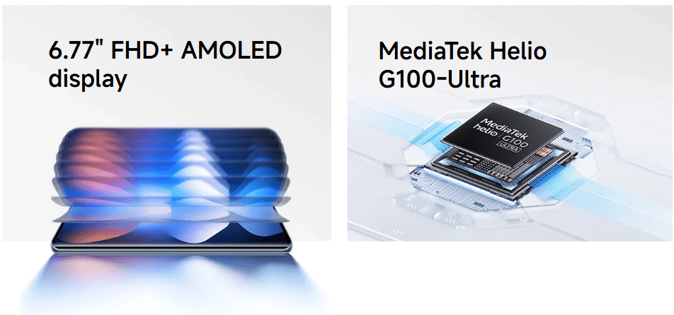Reliable Power: Under the hood, the MediaTek Helio G100-Ultra (6nm) processor ensures smooth multitasking and efficient energy use. It supports up to 16GB of RAM (via memory extension) and generous storage options up to 512GB.