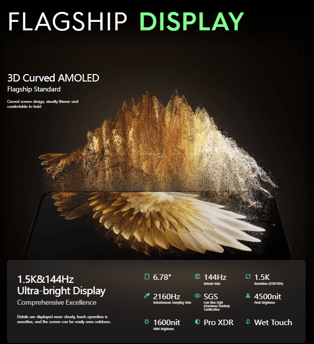 Step into a world of vibrant color. The 6.78″ 1.5K 3D AMOLED display offers a flagship-level 144Hz refresh rate, making every scroll feel like silk. With a peak brightness of 4500 nits, your screen remains crystal clear even under the harshest midday sun.